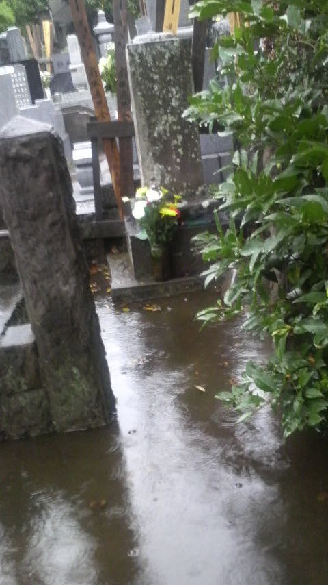 この雨の中、お墓参りに行って来た訳ですが、ウチの墓は水没しておりました…