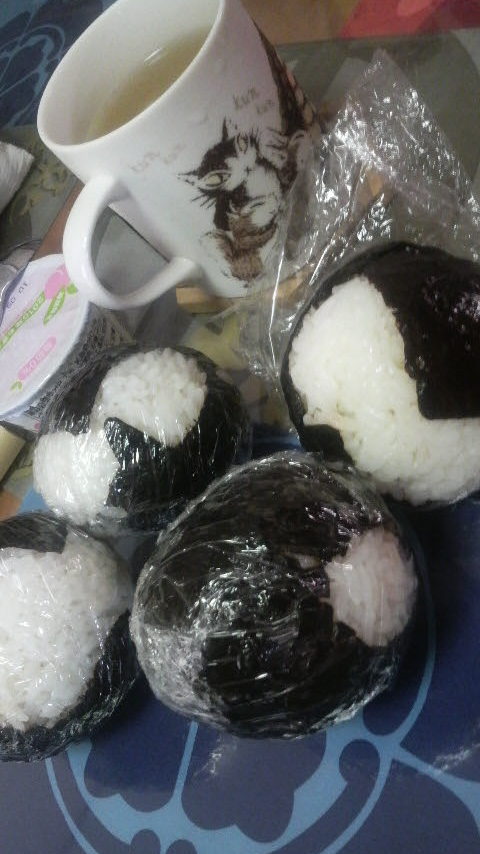 昨日作っておいたおにぎりで飢えを凌いでます。母から伝授?された丸いおにぎりは自分で言うのも何ですが美味いですよ~ウマウマ